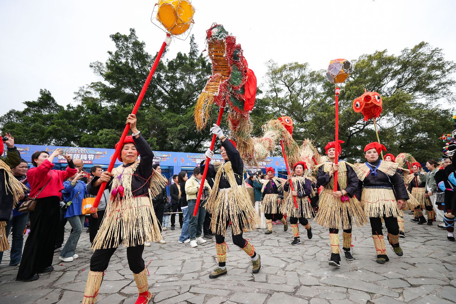 18日,“萨玛节”现场的舞稻草龙表演。