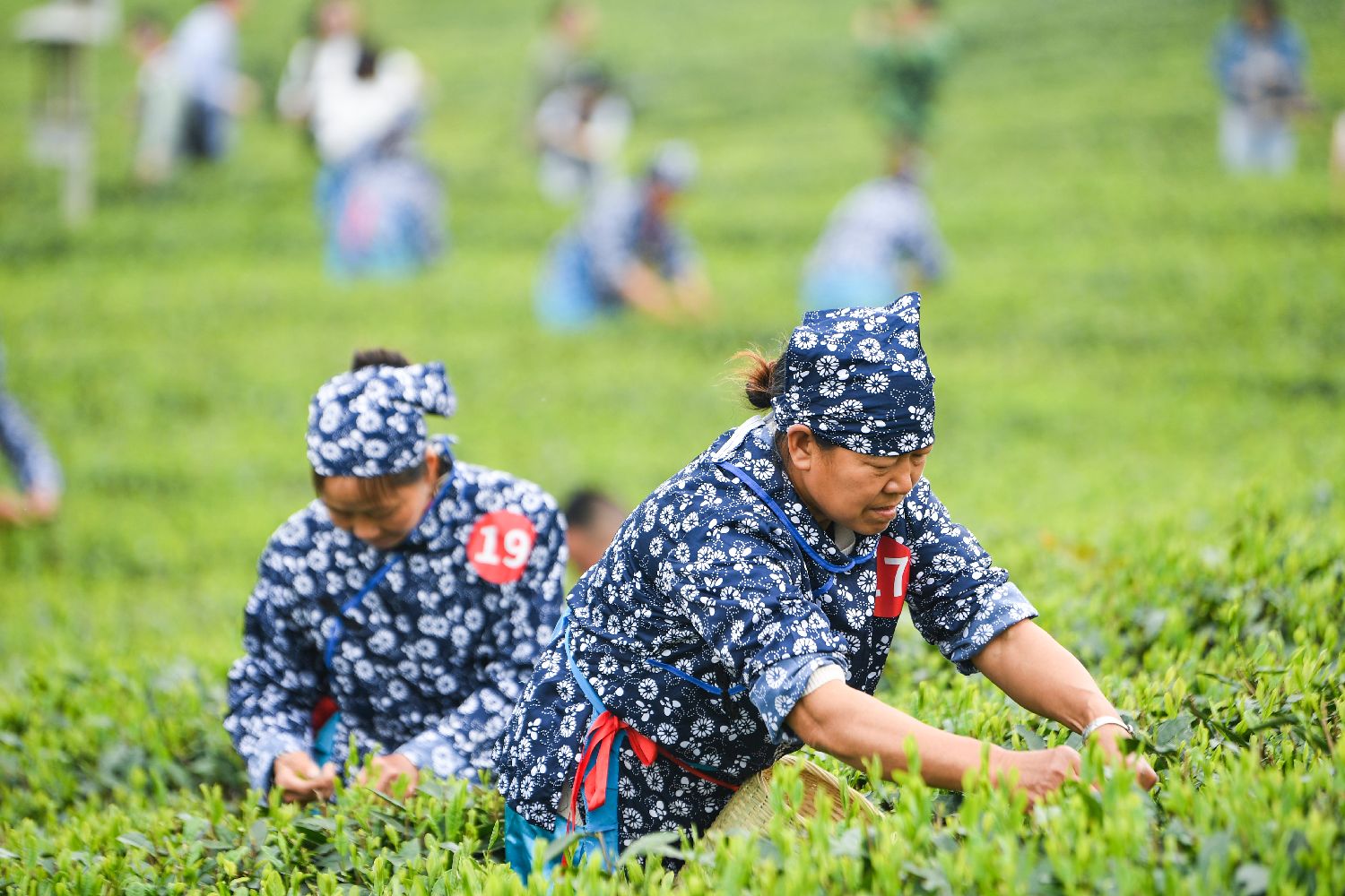2日,选手在重庆市永川区永荣镇白云寺村乡村振兴就业园茶叶采摘区采茶。