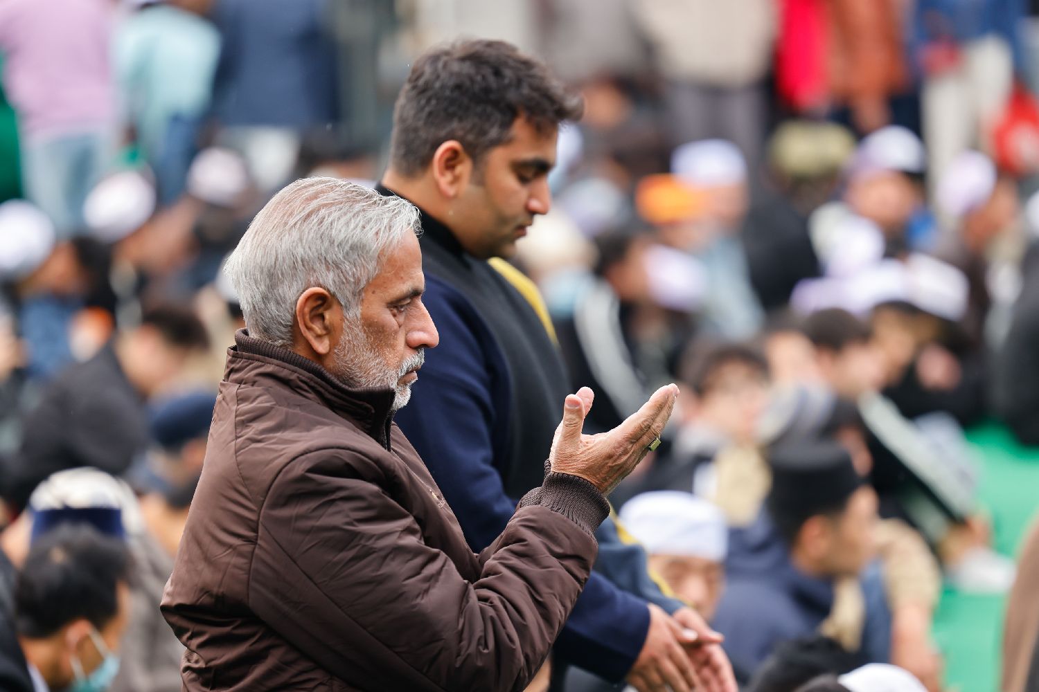 10日,在北京牛街礼拜寺,各国穆斯林参加礼拜活动。王泽 摄