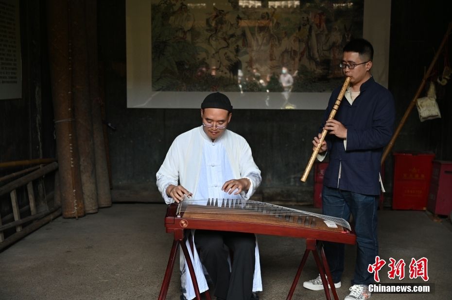 崇仁古镇内的琴箫合奏表演。