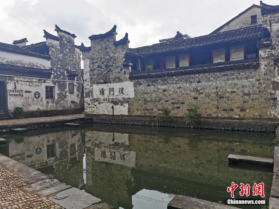 民众游客可欣赏老台门、过街楼、古戏台、庙宇、祠堂等景点,听一曲悠扬的越剧,饮一杯紫砂壶泡就的清茶,品尝当地的特色美食,感受悠悠历史古韵孕育而成的慢生活气息。图为崇仁古镇内的后门塘。