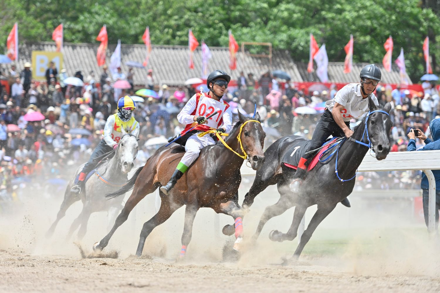 选手25日参加三月街民族节赛马大会。