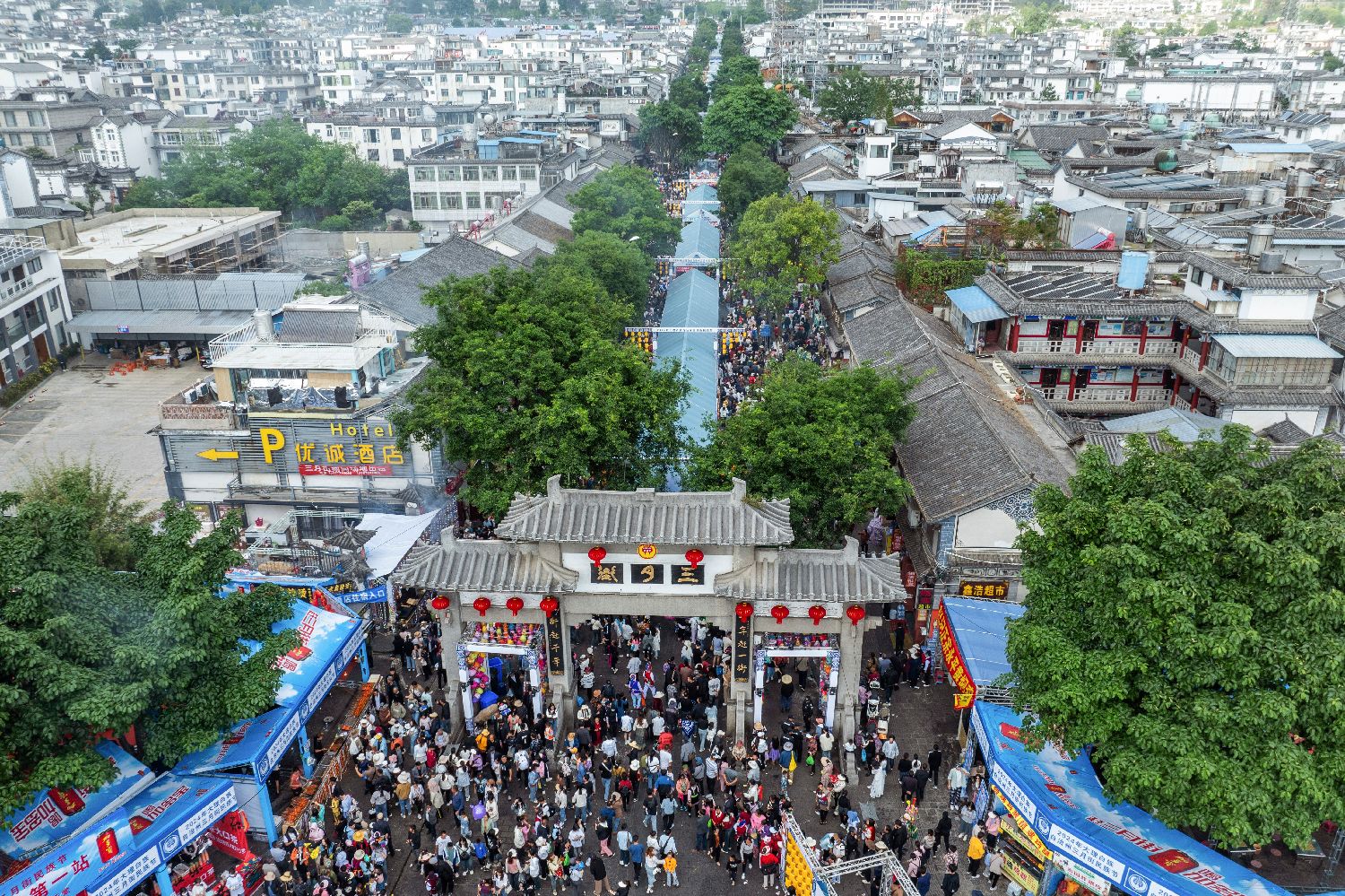 人们参加三月街民族节(4月23日摄,无人机照片)。