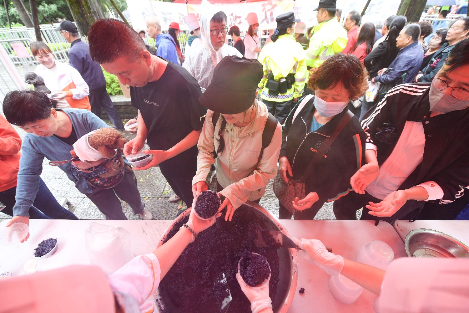 5月5日是中国二十四节气中的“立夏”,浙江杭州举办“半山立夏节”,称人、斗蛋、吃乌米饭、蚕花会等传统民俗活动吸引民众观看和体验。2016年,半山立夏习俗作为“二十四节气”重要组成部分,被联合国教科文组织列入人类非物质文化遗产代表作名录。图为市民领取乌米饭。