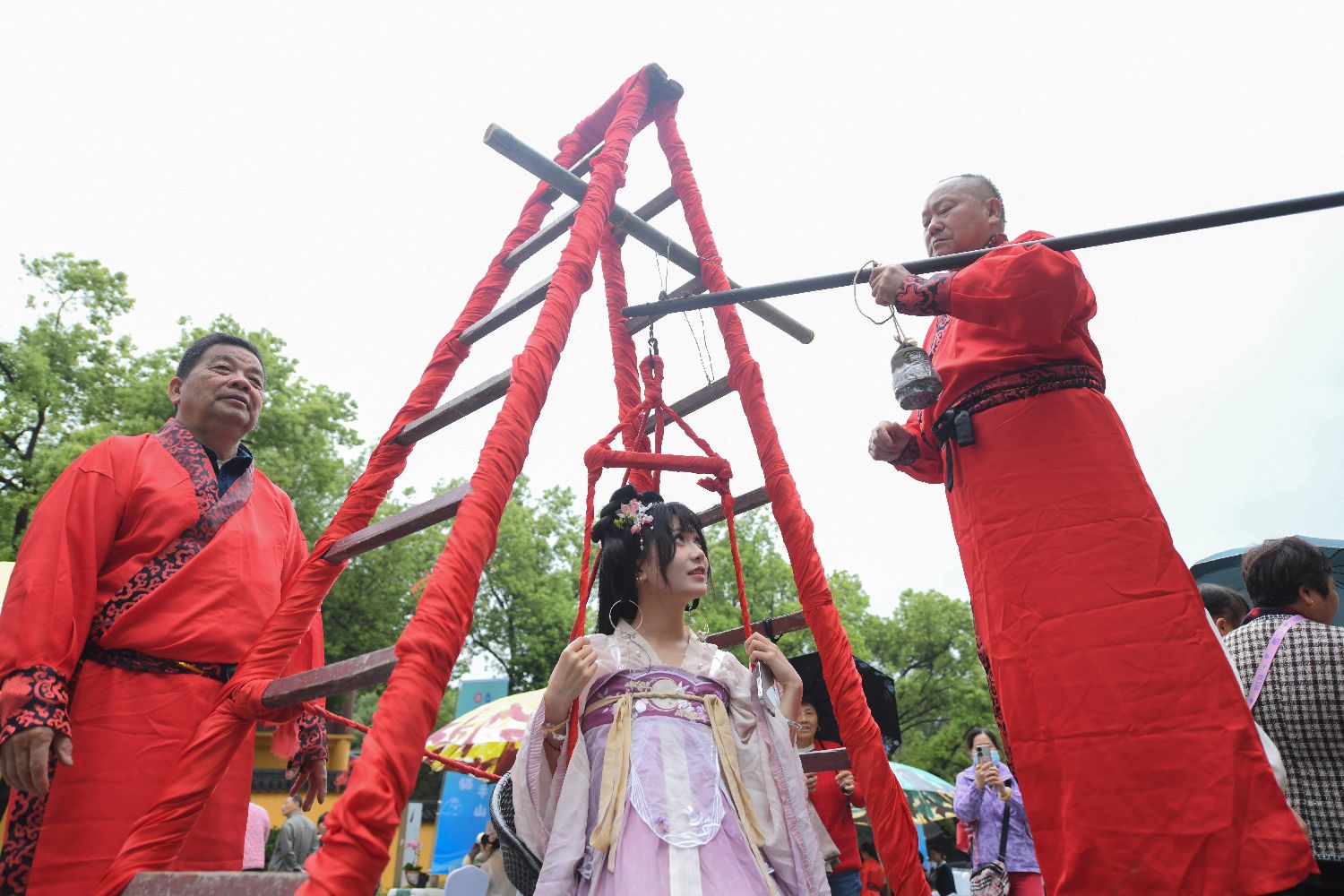 图为“蚕花娘娘”亮相活动现场。