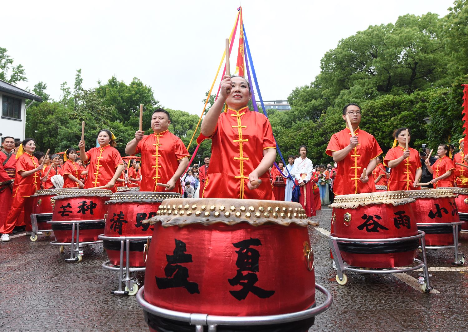 图为表演者敲击二十四节气鼓。