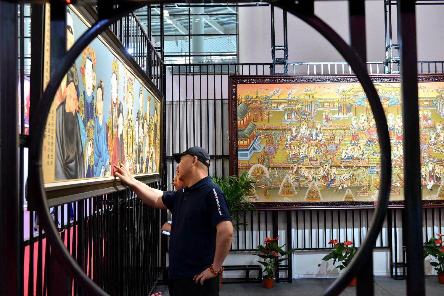 5月9日,2024中国工艺美术博览会在福建福州开幕,集中展示工艺美术从业者创作的陶瓷、雕刻、织绣、水晶、香器漆器等全品类工艺美术优秀作品。图为景泰蓝绘画作品吸引参观者。