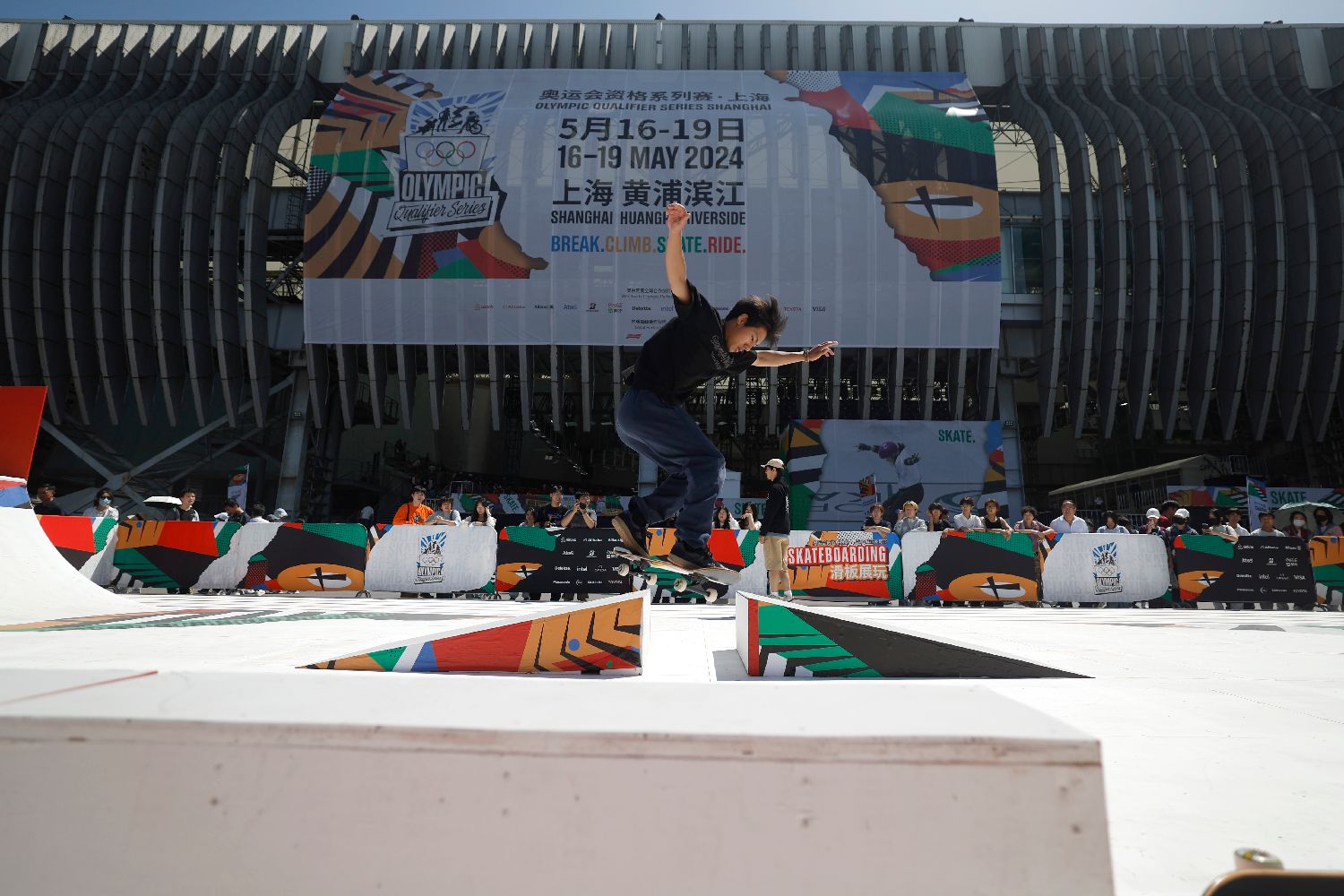 奥运会资格系列赛上海站16日在黄浦江畔揭幕。在这项国际奥委会全新打造的赛事中,四个奥运新兴项目——滑板、攀岩、霹雳舞、自由式小轮车的464名世界顶尖选手,将为150余张巴黎奥运会入场券展开终极对决。比赛将持续至19日。