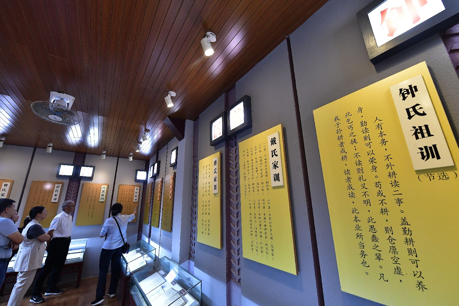 参观者22日在“福建土楼”永定景区庆成楼内的客家家训馆参观。这是中国首家客家家训馆,集中展示了土楼客家人的祖训家规。