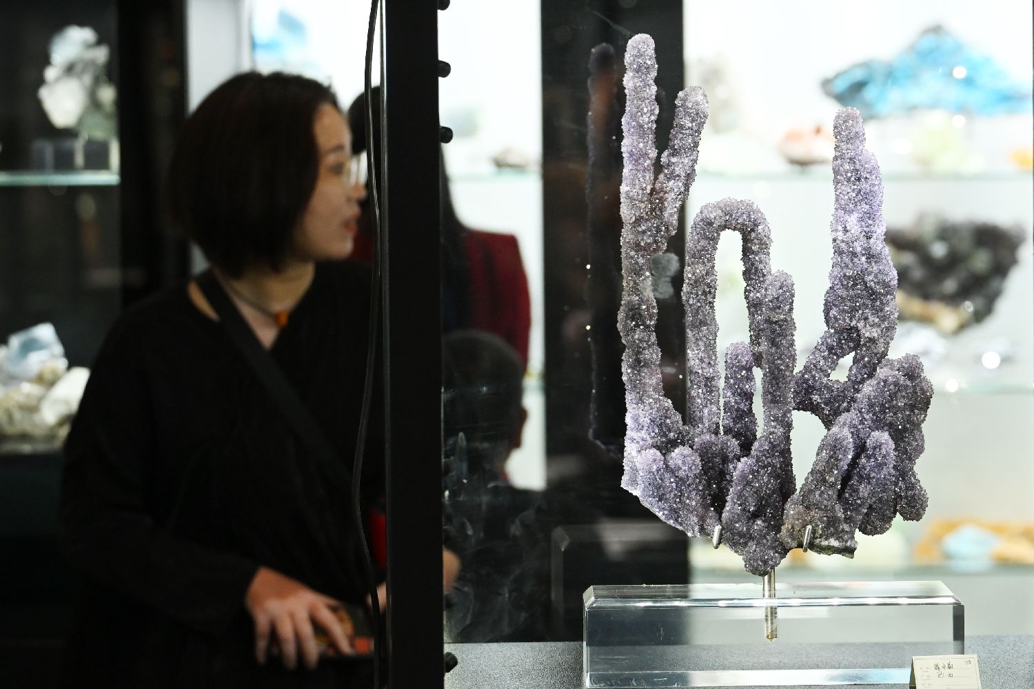 图为观众参观来自巴西的紫水晶。