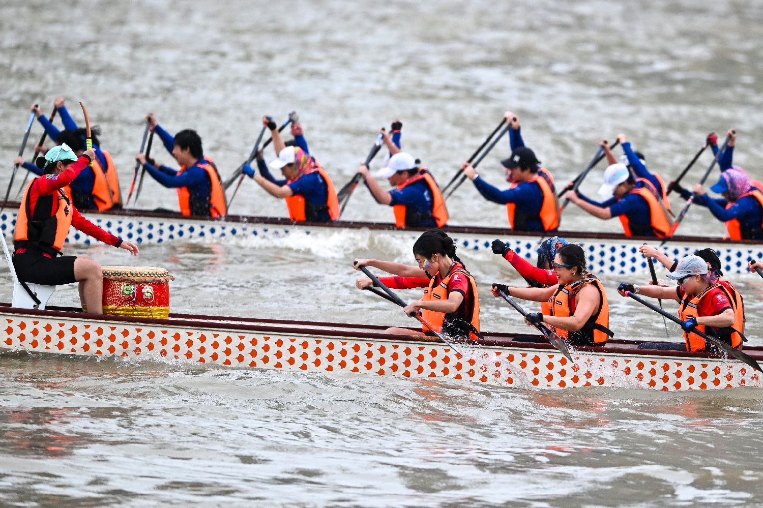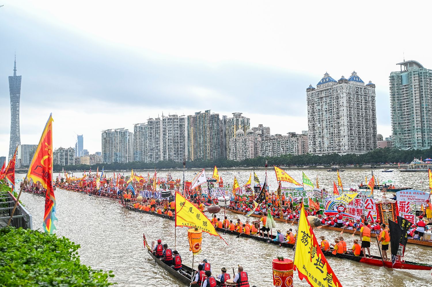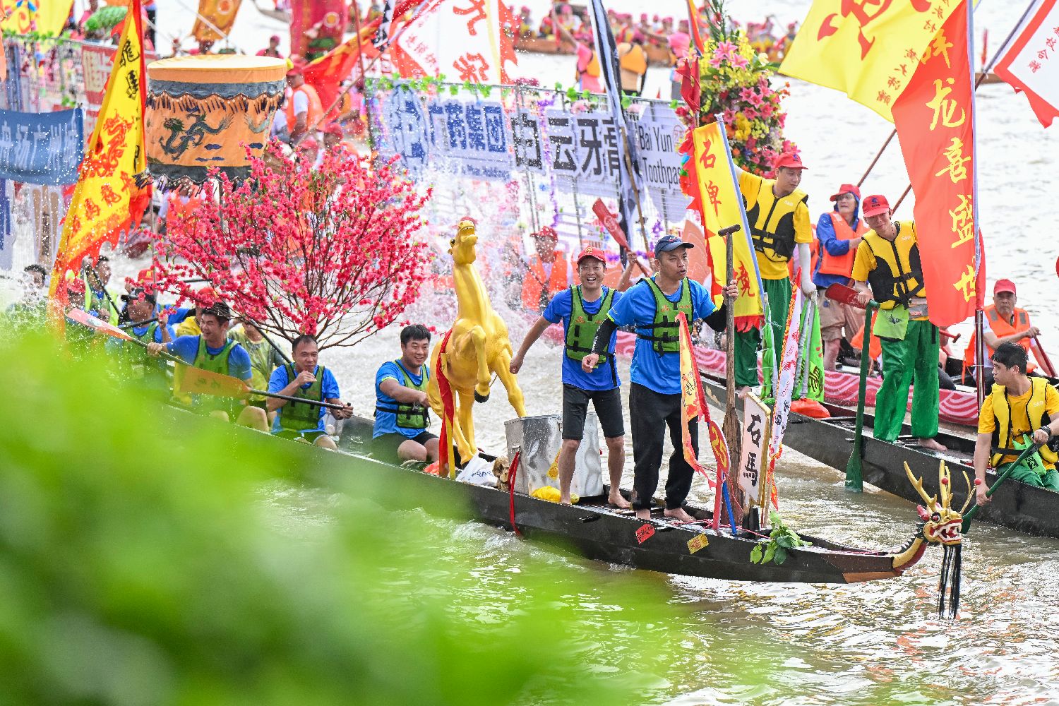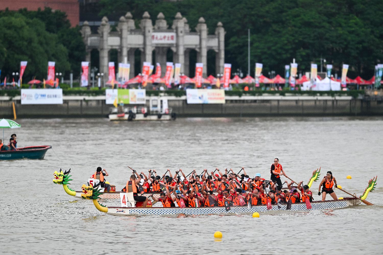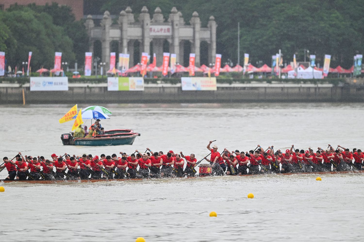 16日,2024年广州国际龙舟邀请赛在中大北门广场至广州大桥之间的珠江河段挥桨开赛,111艘来自海内外的龙舟及4000多名运动员参加了比赛,观赛嘉宾和民众约5.2万人次。