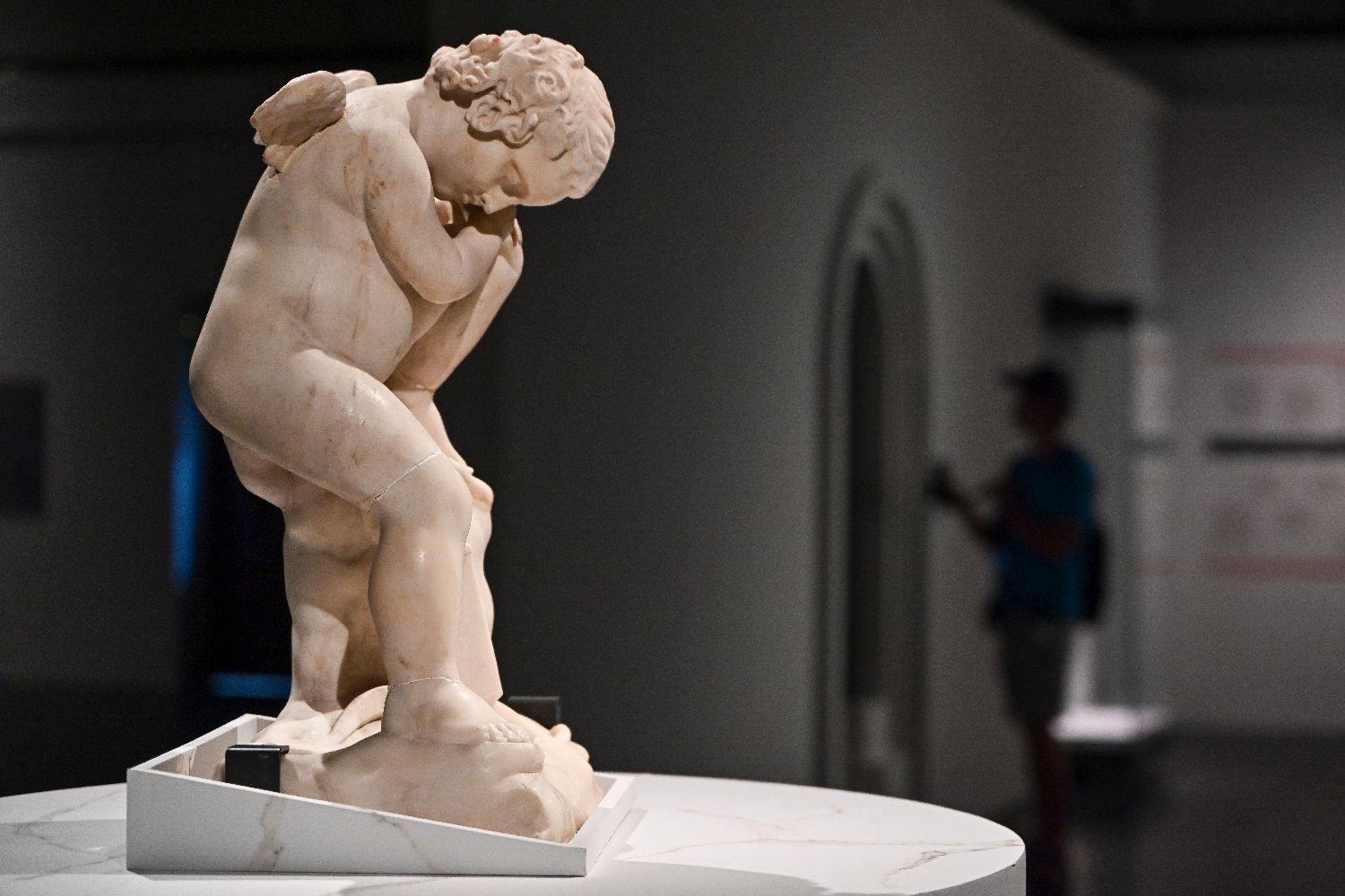 6月20日,广东省博物馆举办“罗马帝国的艺术——那不勒斯国立考古博物馆藏文物精品展”导赏活动。图为展陈的“沉睡中的丘比特”雕塑。