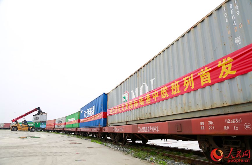 天津国际陆港中欧班列首发现场。(图片来源:北京人民网)