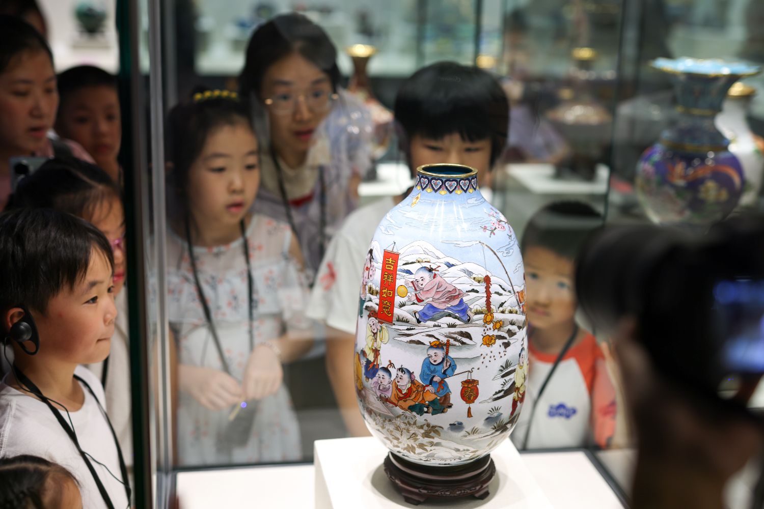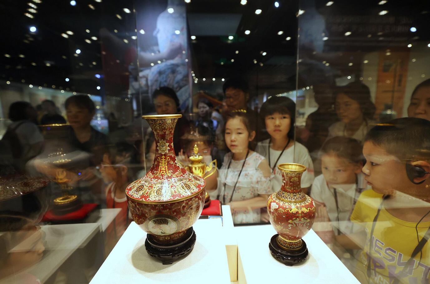 小朋友参观景泰蓝艺术博物馆。(图片来源:北京《新京报》)