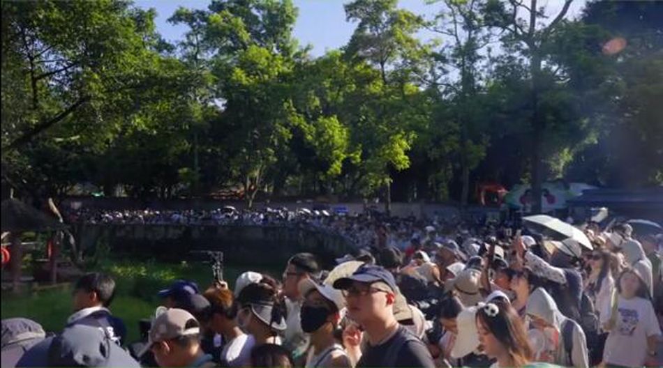 大批民众早早来到现场等候。(图片来源:重庆市动物园管理处官方微博视频截图)