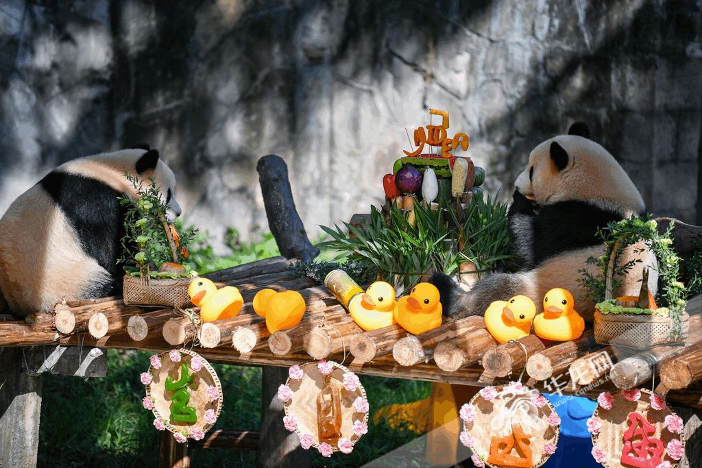 大熊猫“渝可”“渝爱”2岁啦 重庆动物园举办生日会