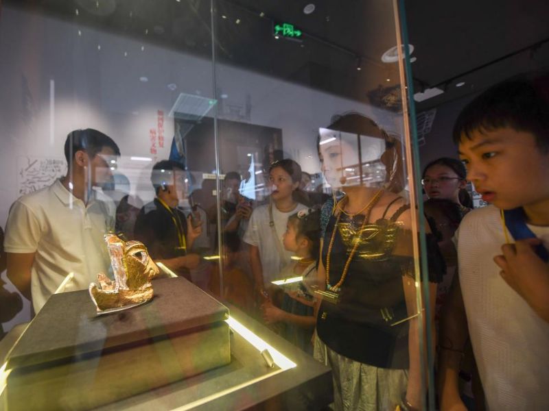 在三星堆博物馆文物保护与修复馆,游客在馆内参观(7月23日摄)。(图片来源:新华社)