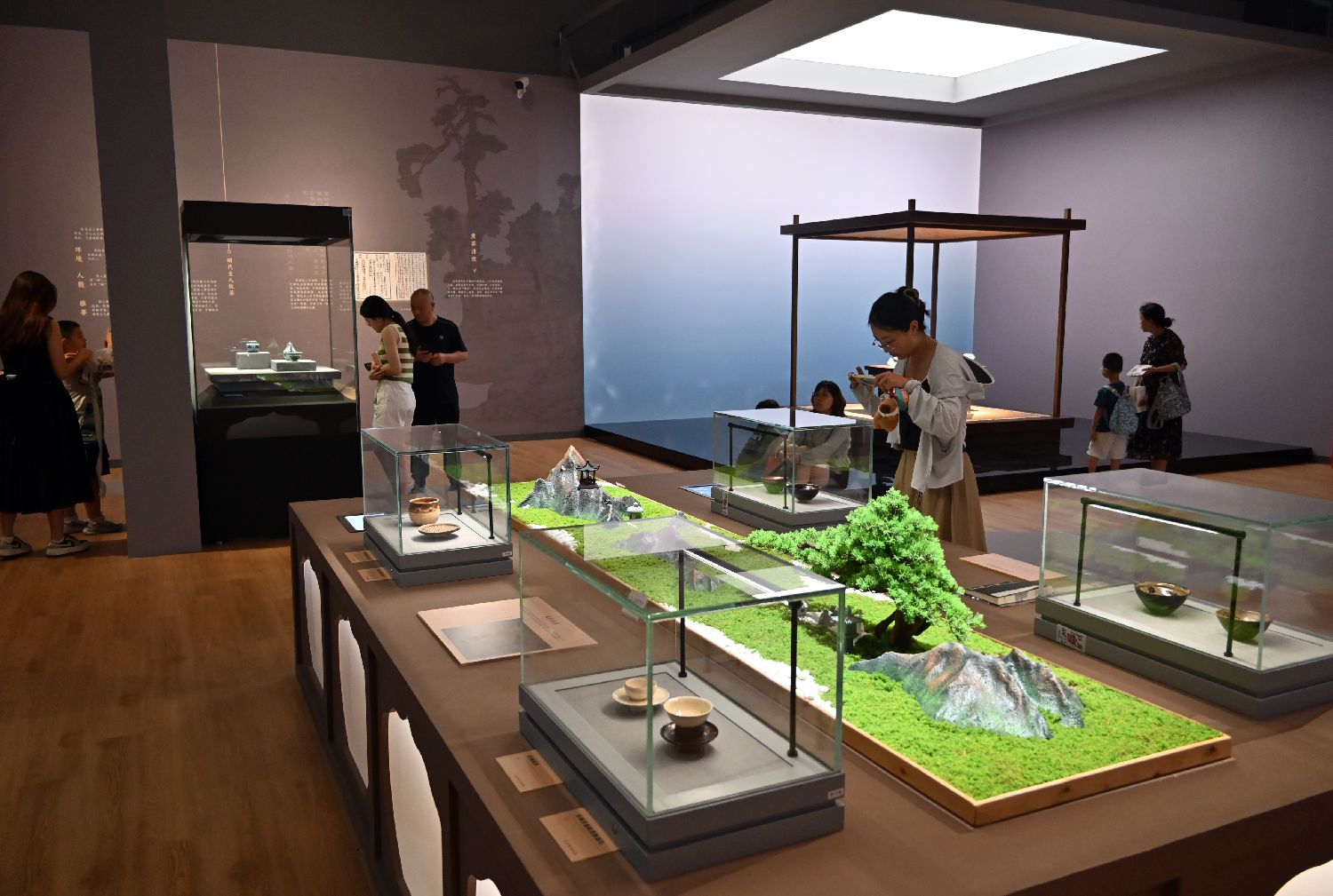 民众8月1日参观茶文化精品文物展。(图片来源:中新社)