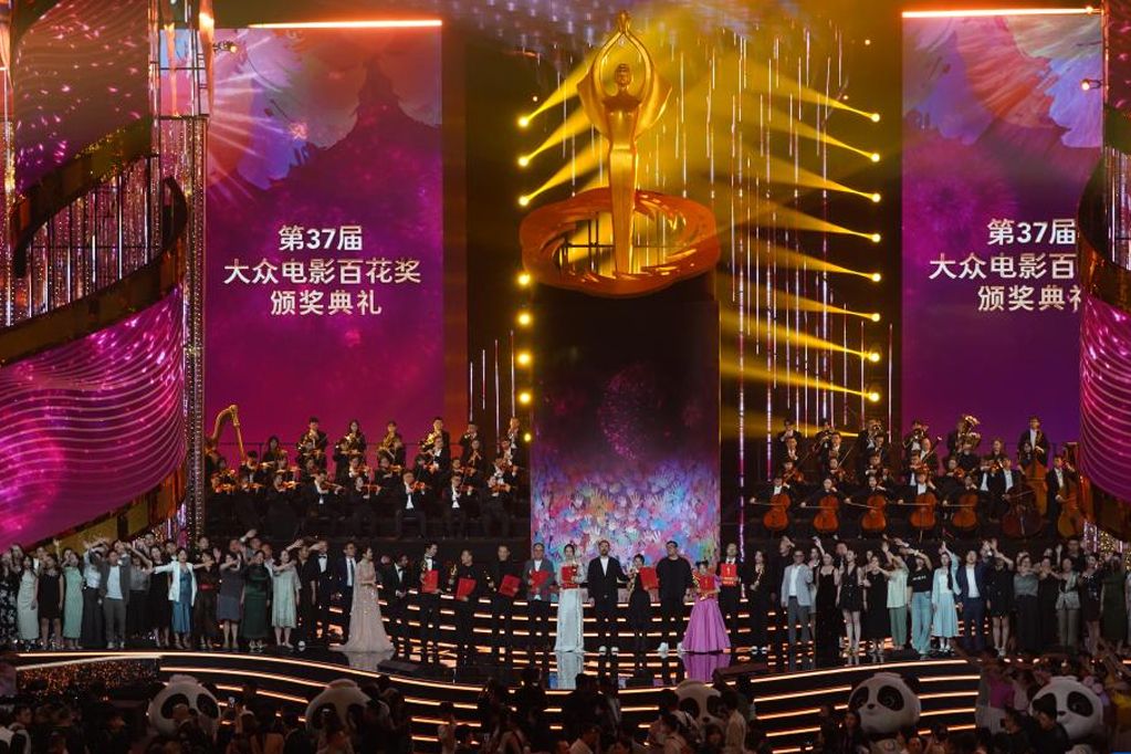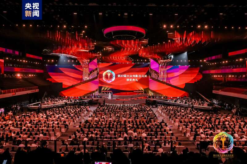 第37届大众电影百花奖颁奖典礼在成都高新体育中心举行,在颁奖典礼现场评选出本届百花奖的九项大奖。(图片来源:大陆央视新闻)