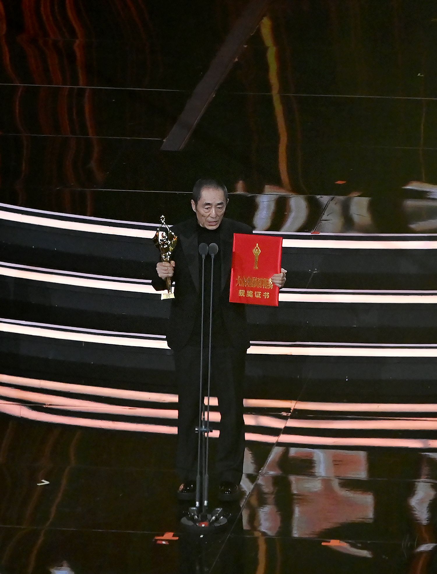 张艺谋凭借《第二十条》获得最佳导演。图为张艺谋在颁奖典礼上。(图片来源:中新社)