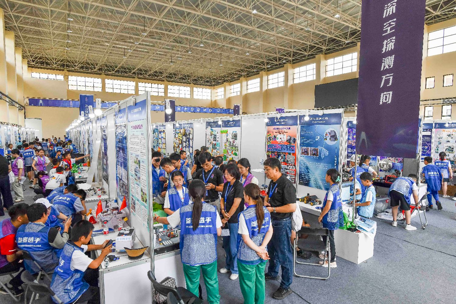 大赛汇聚了来自中国31个省、自治区、直辖市及港澳地区的3934名青少年航天爱好者、200名志愿者、5000余名指导教师及家长,近万人参与赛事。图为比赛现场。(图片来源:中新社)