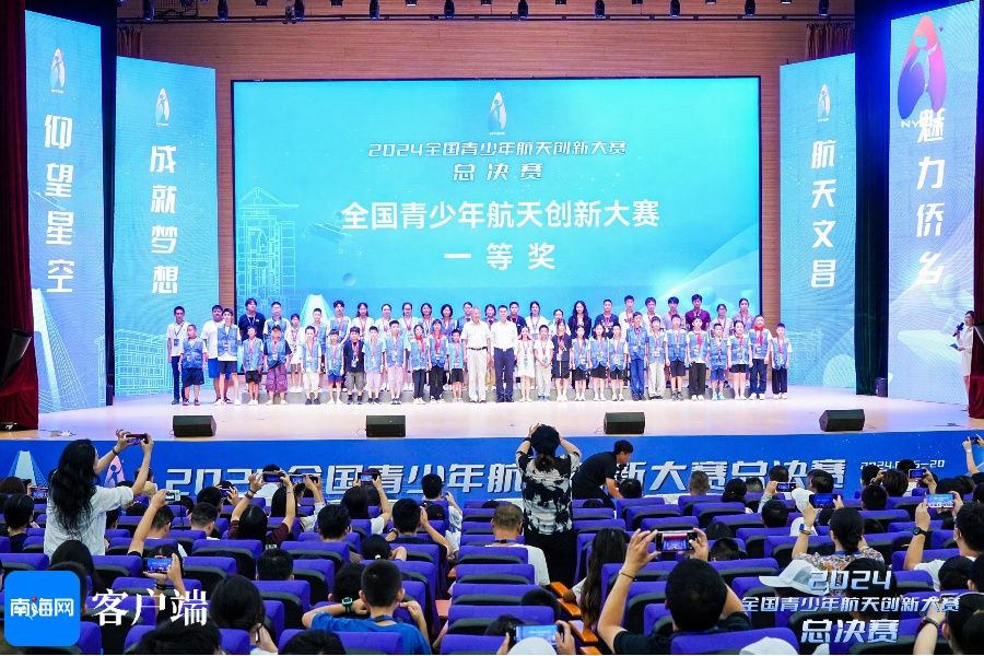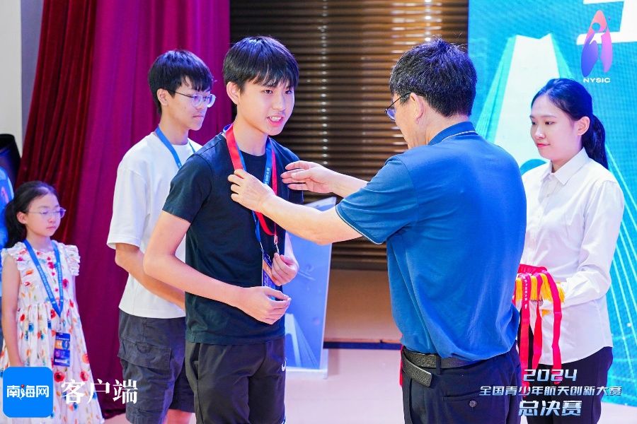 大赛通过组织青少年参与航天科学技术创意设计、太空探索和工程实践等活动,促进航天科学技术的普及和推广,提高青少年科技创新素质,培养航天后备人才。图为颁奖现场。(图片来源:海南南海网客户端)