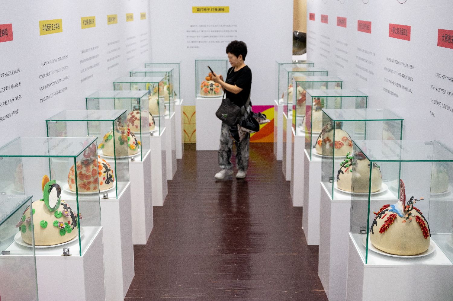 太原市民在中国面塑艺术展上参观“二十四节气花馍”。