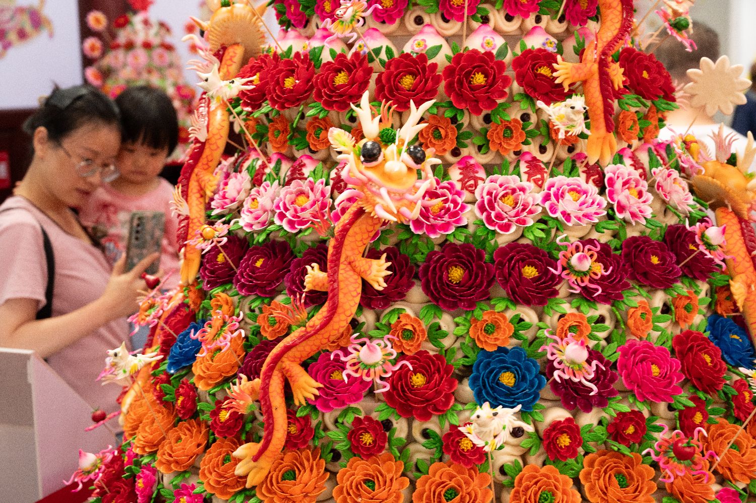 2024中国非遗面食大会·中国面塑艺术展23日在山西省太原市开展。展览为了促进非遗与旅游深度融合,传承非遗面食技艺。