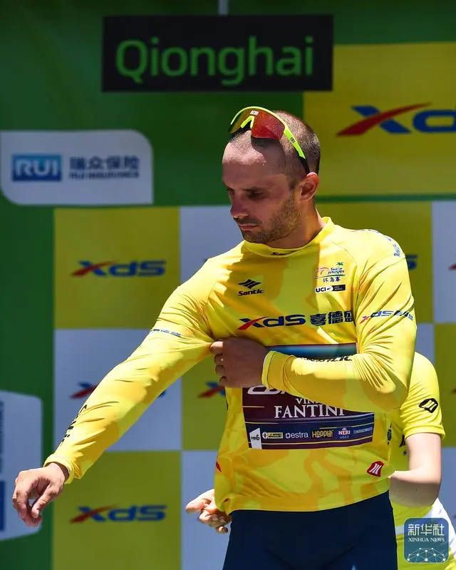 意大利克罗蒂克车队车手雅各布·马雷奇科获得代表个人总成绩第一名的黄衫。(图片来源:新华社)