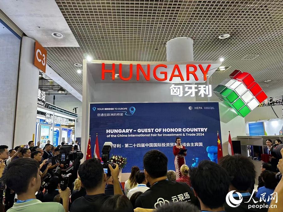 在展区设置方面,设置了中心展区以及投资促进、产业创新发展、项目资本对接等三个主题馆,重点围绕“引进来”“走出去”“促进全球务实合作”等热点,努力打造促进双向投资的国际公共平台。图为本届投洽会主宾国——匈牙利。(图片来源:人民网)