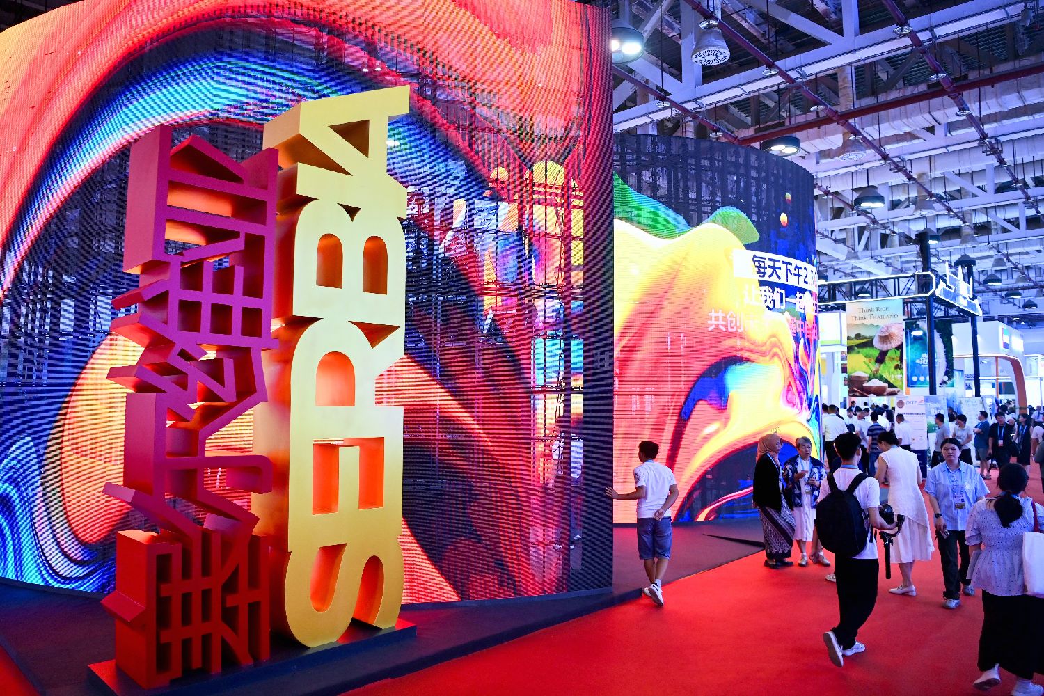 塞尔维亚馆亮相投洽会。(图片来源:中新社)