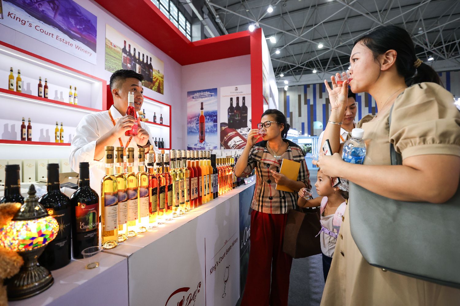 参观者在展馆里尽情品尝,选购全球美酒,共享酒博盛宴。(图片来源:贵州贵阳新闻网官方微博)