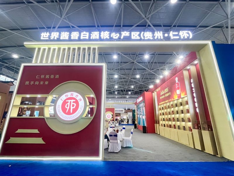 5号馆和历届酒博会一样,被定义为中国酱香白酒核心产区馆,整个展馆聚集了来自仁怀的63家知名白酒企业。图为5号馆仁怀酱香酒展厅。(图片来源:北京人民网)