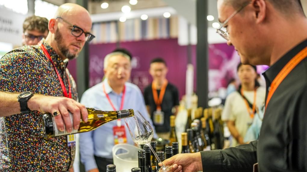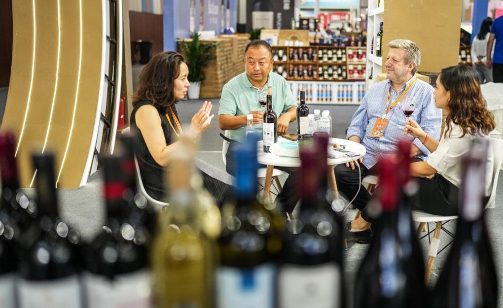 参观者9日在酒博会国际精品馆内品尝葡萄酒。(图片来源:中新社)