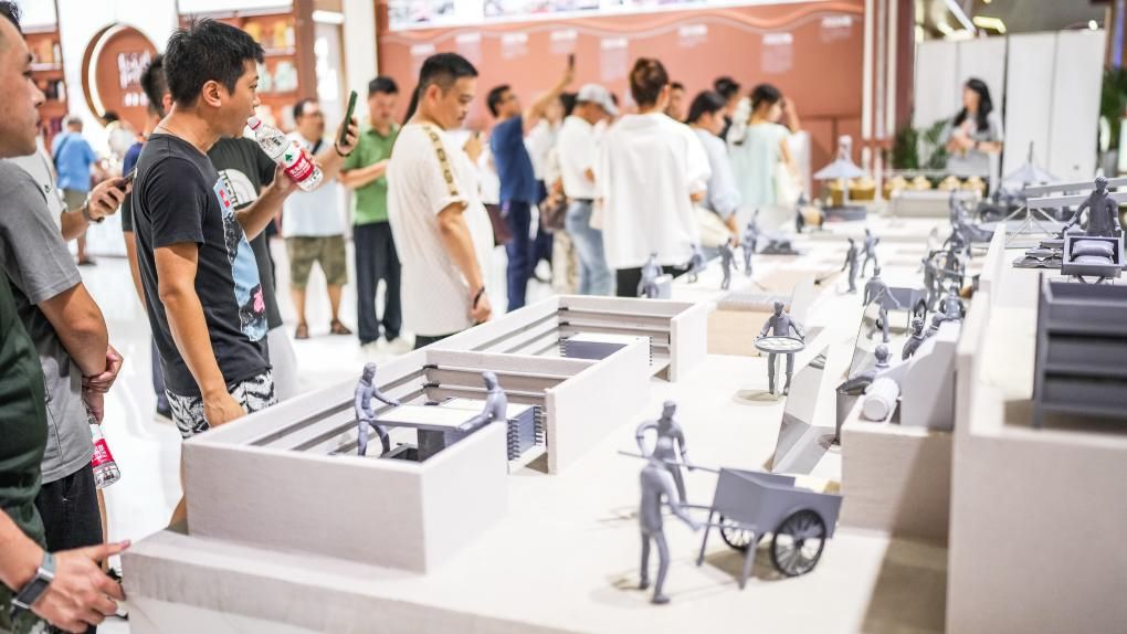 观众9日在酒博会现场参观制酒工艺模型。(图片来源:新华社)