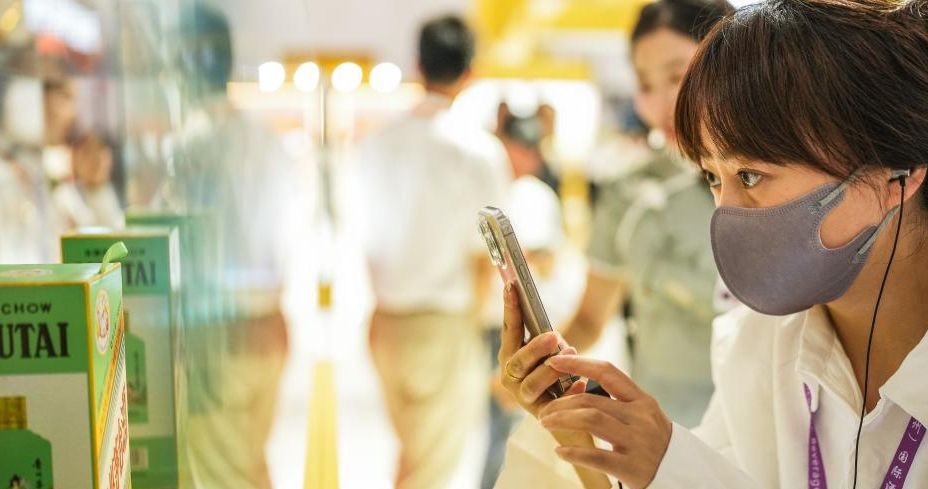 参观者9日在酒博会贵州茅台展区参观。(图片来源:中新社)