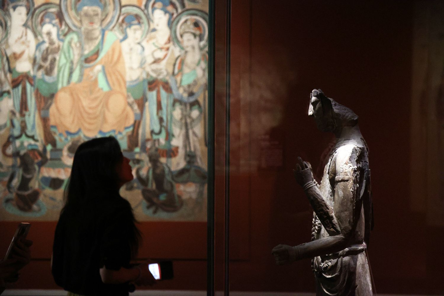 展览汇集敦煌研究院馆藏展品共计168件套,是有史以来敦煌文化艺术展品在上海最全面,最多样的展出。图为9月18日,敦煌文化艺术展品吸引观众。