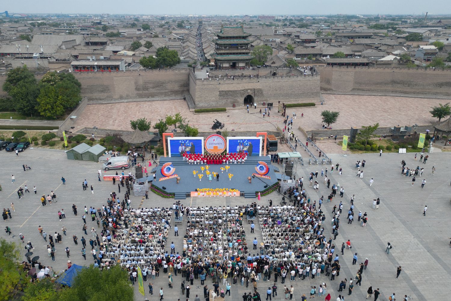 第24届平遥国际摄影大展在2800年历史的平遥古城开幕。(无人机照片)(图片来源:中新社)
