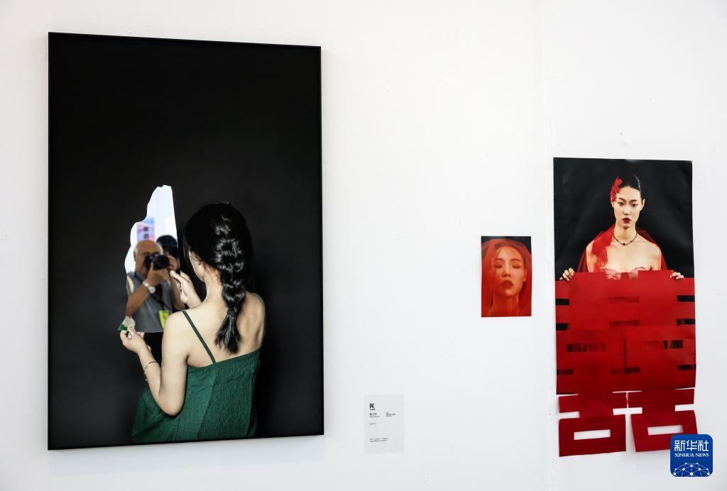19日拍摄的在第24届平遥国际摄影大展展场内展出的中国艺术研究院院校展的作品。(图片来源:新华社)