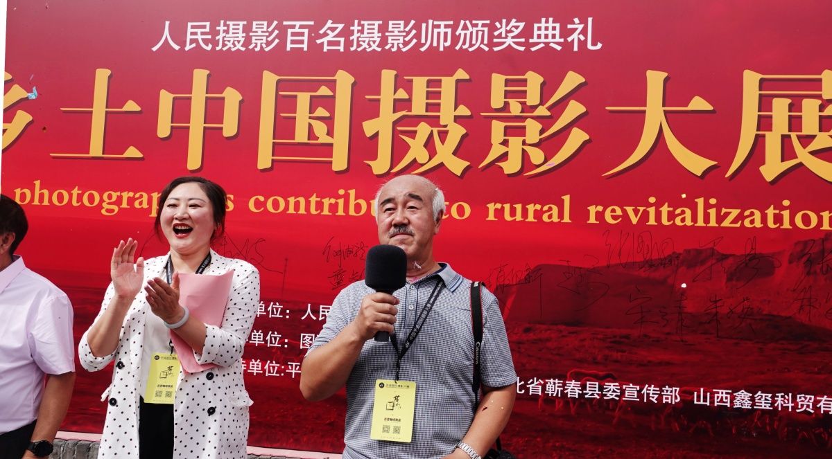 中国新闻摄影学会会长兰红光宣布人民摄影“家园”乡村中国摄影大展开幕。(图片来源:广西云-《广西日报》)