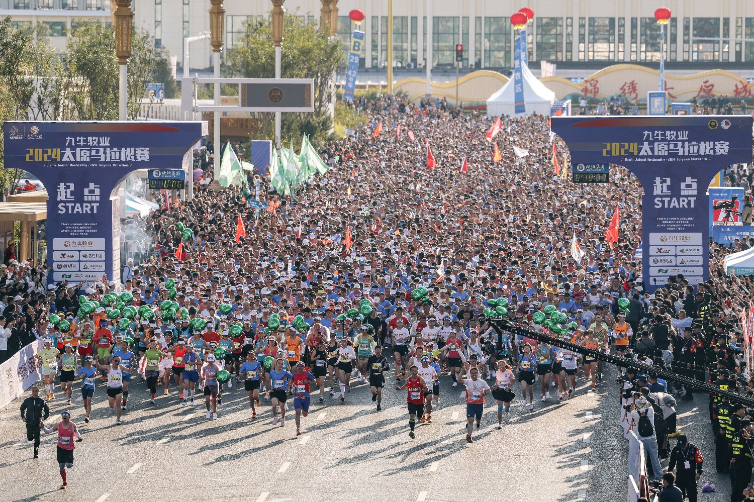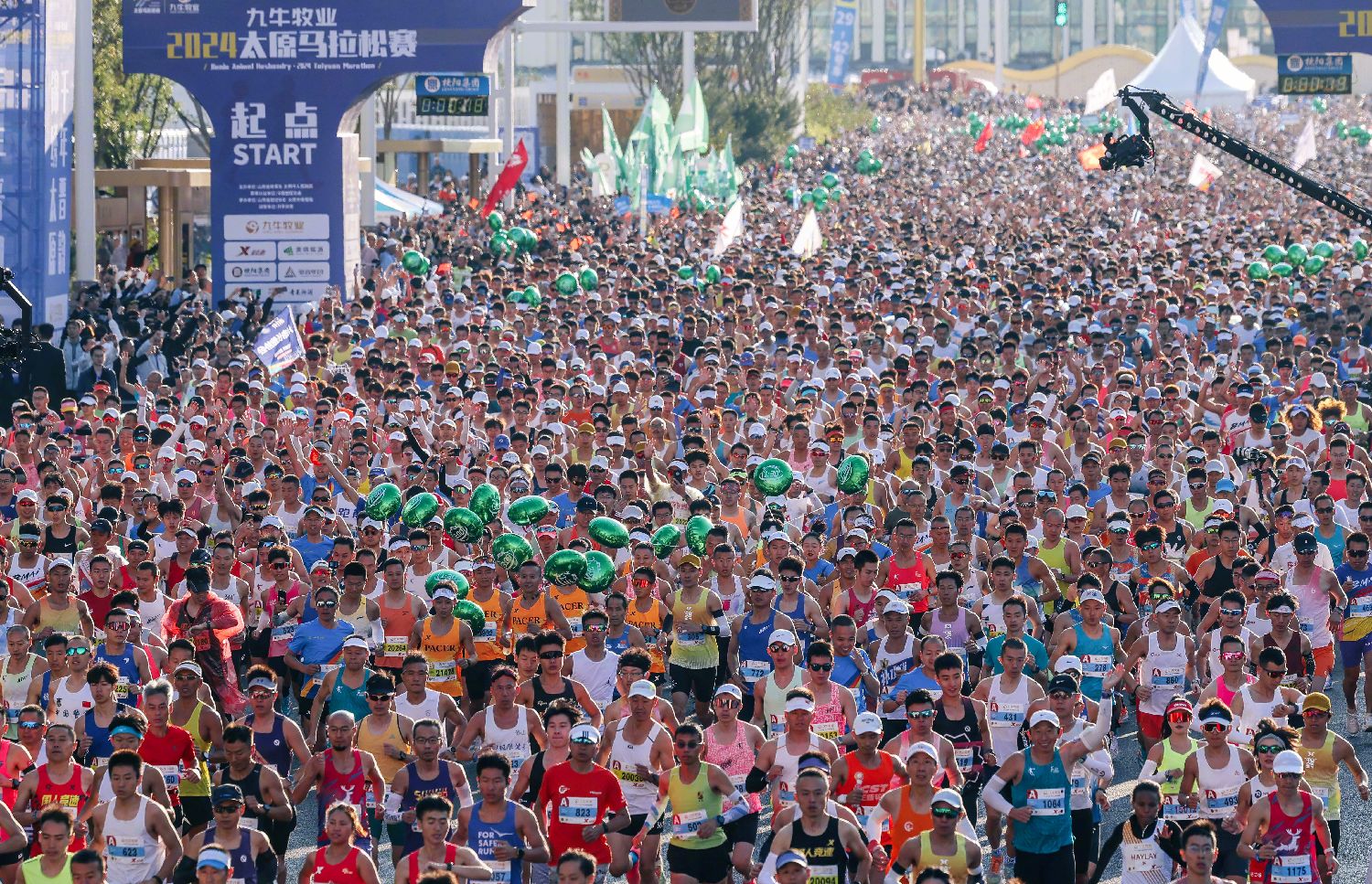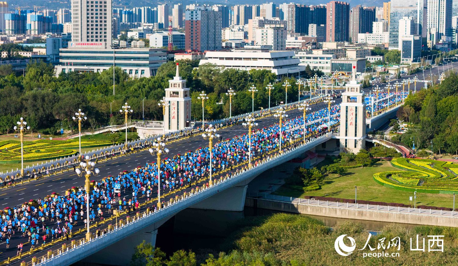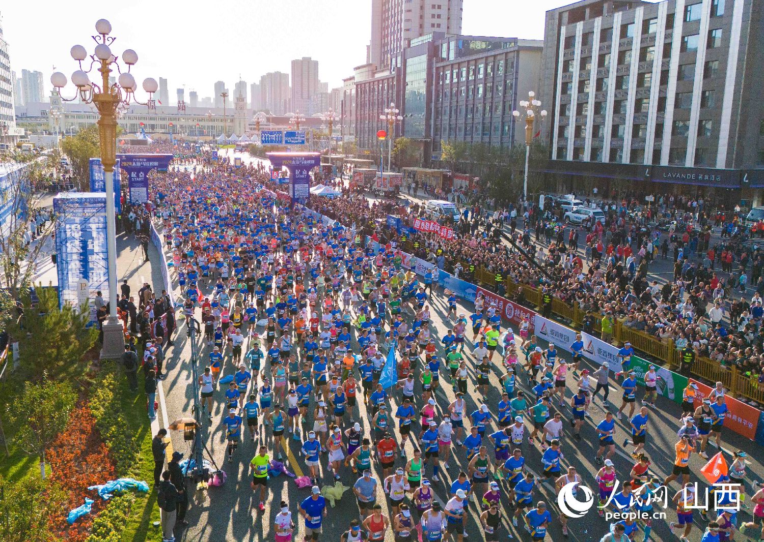 来自世界各地的4万名跑友参赛。(图片来源:中新社发太原马拉松组委会供图)