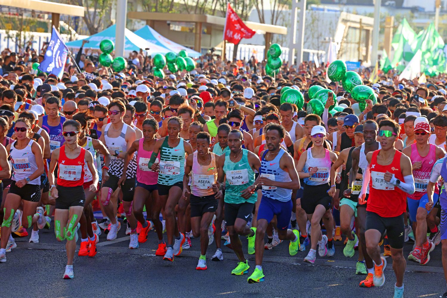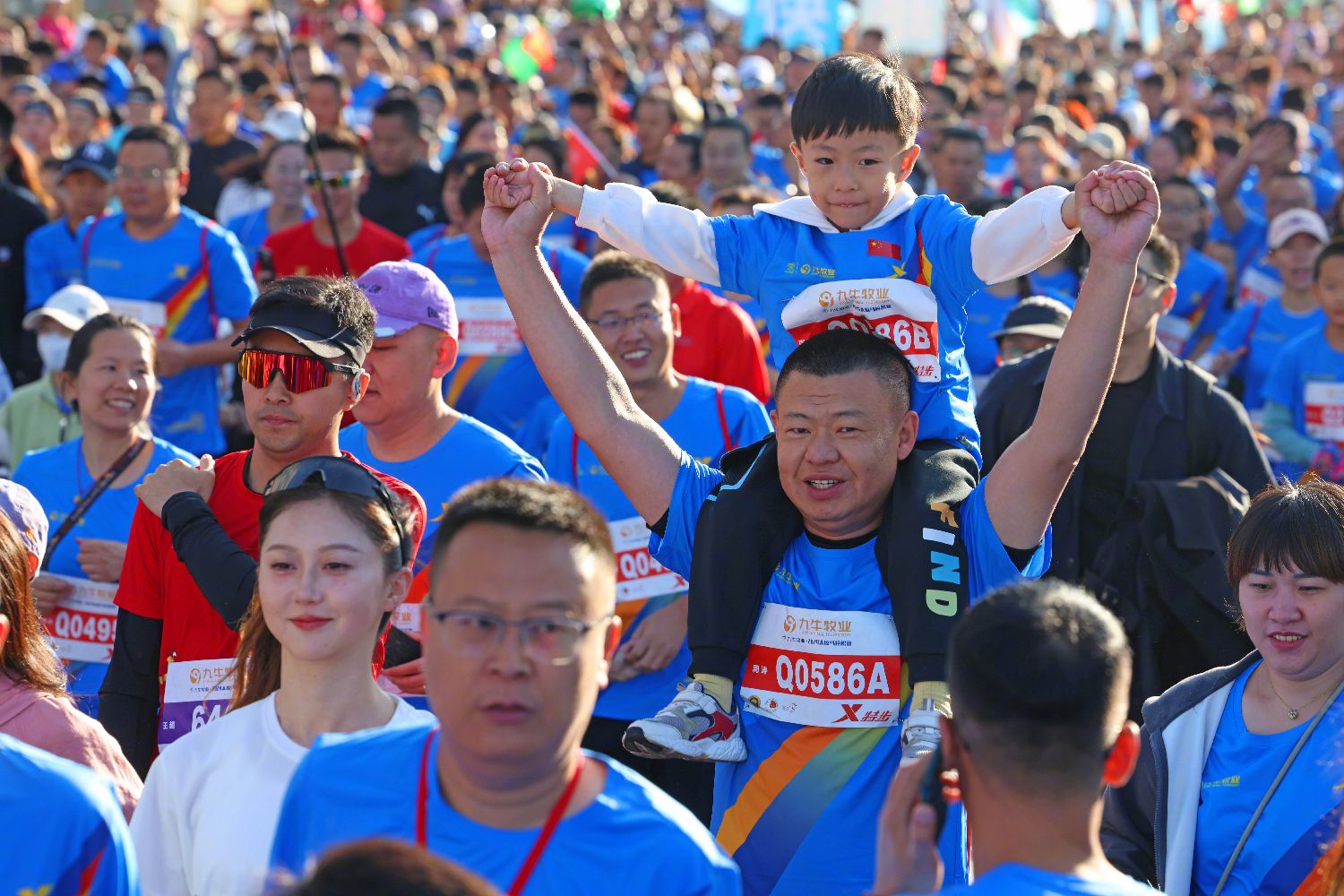4万余名参赛选手参与全程马拉松、半程马拉松、迷你跑和家庭亲子跑等项目的角逐。(图片来源:中国日报网官方微博)