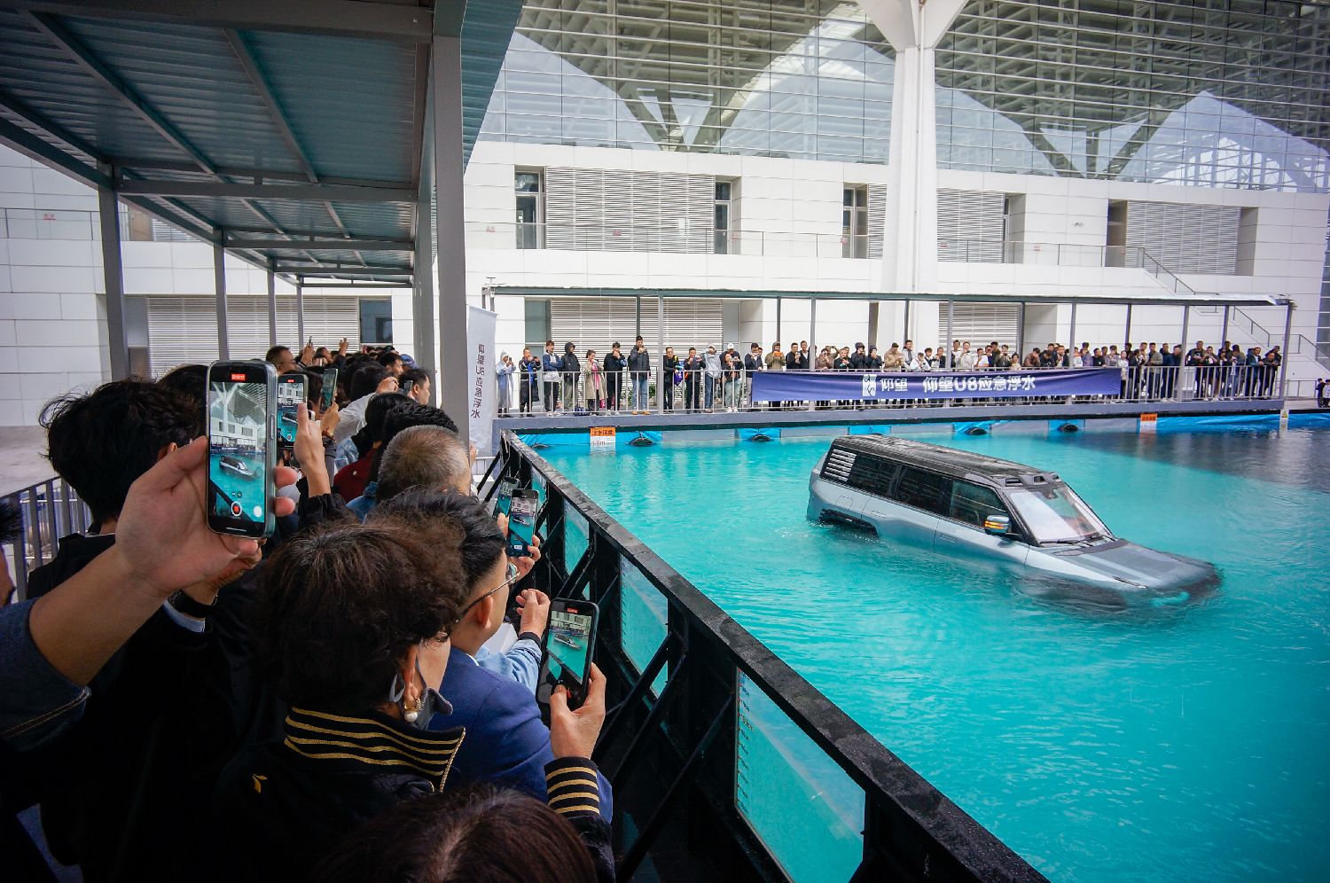 仰望U8应急浮水展示吸引观众。(图片来源:中新社)