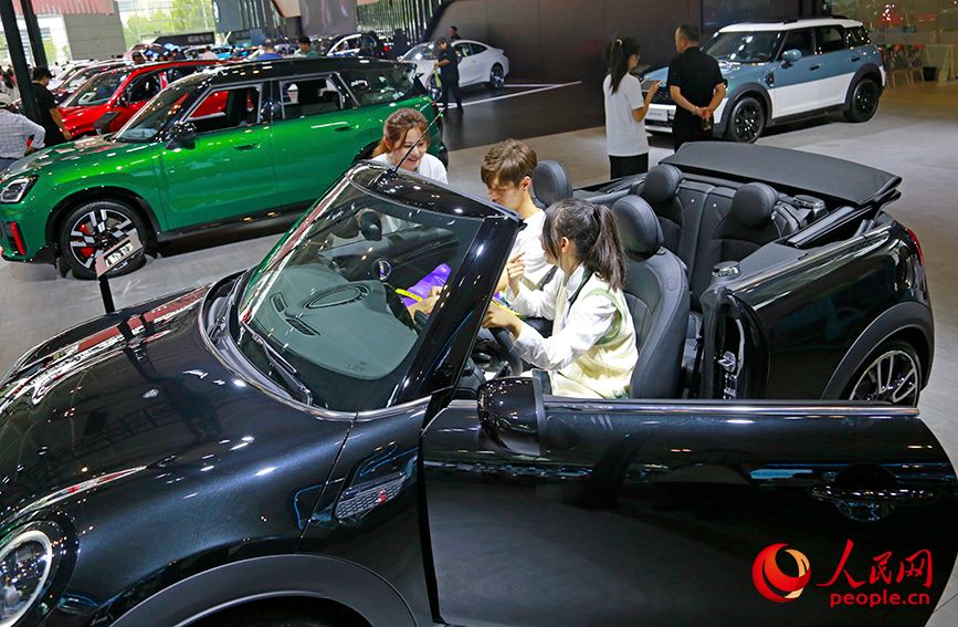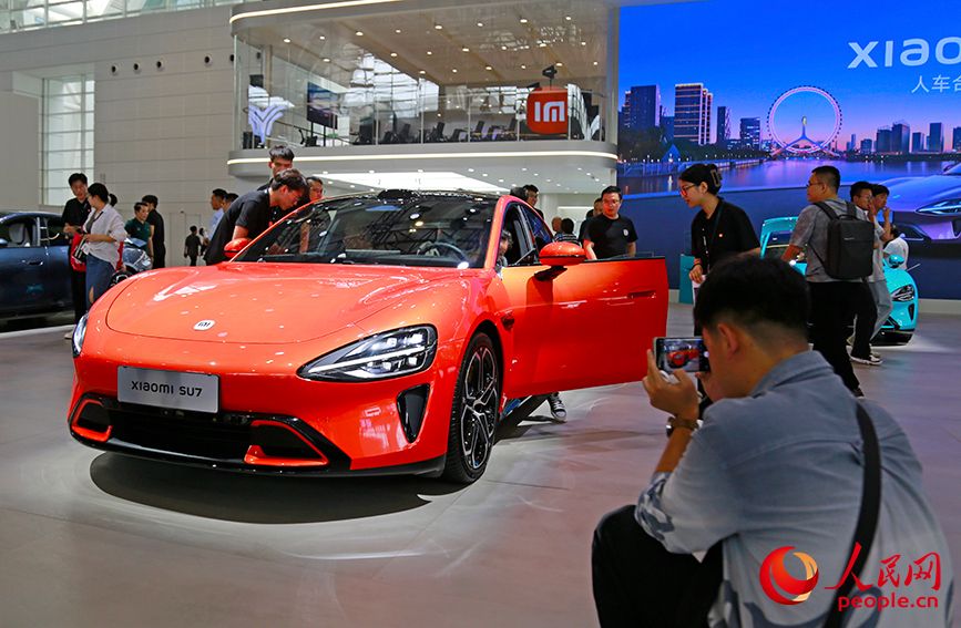 小米、鸿蒙智行、东风纳米等品牌首次亮相天津车展,吸引了众多民众到会参观。图为小米su7亮相天津国际汽车展。(图片来源:北京人民网)