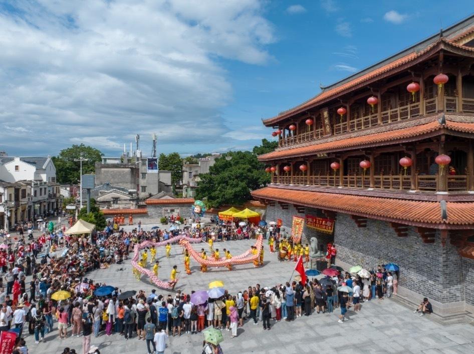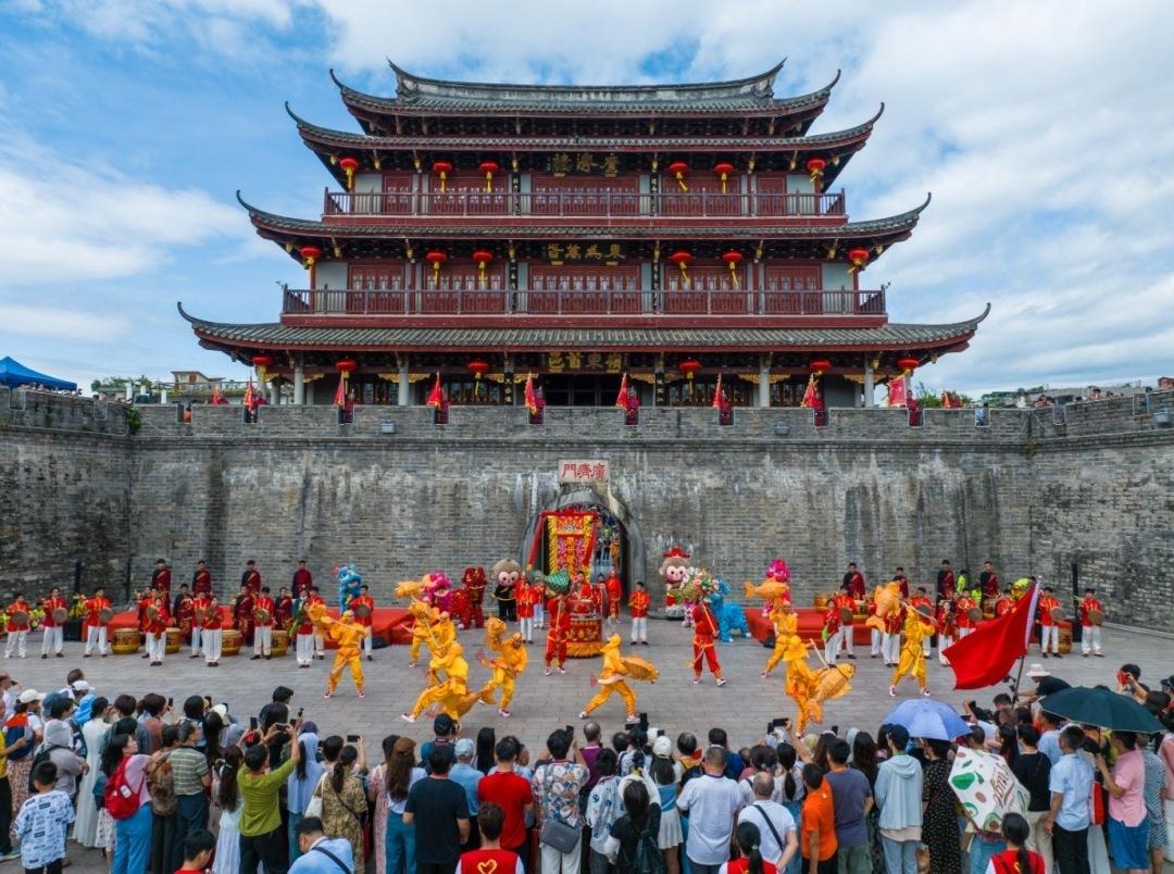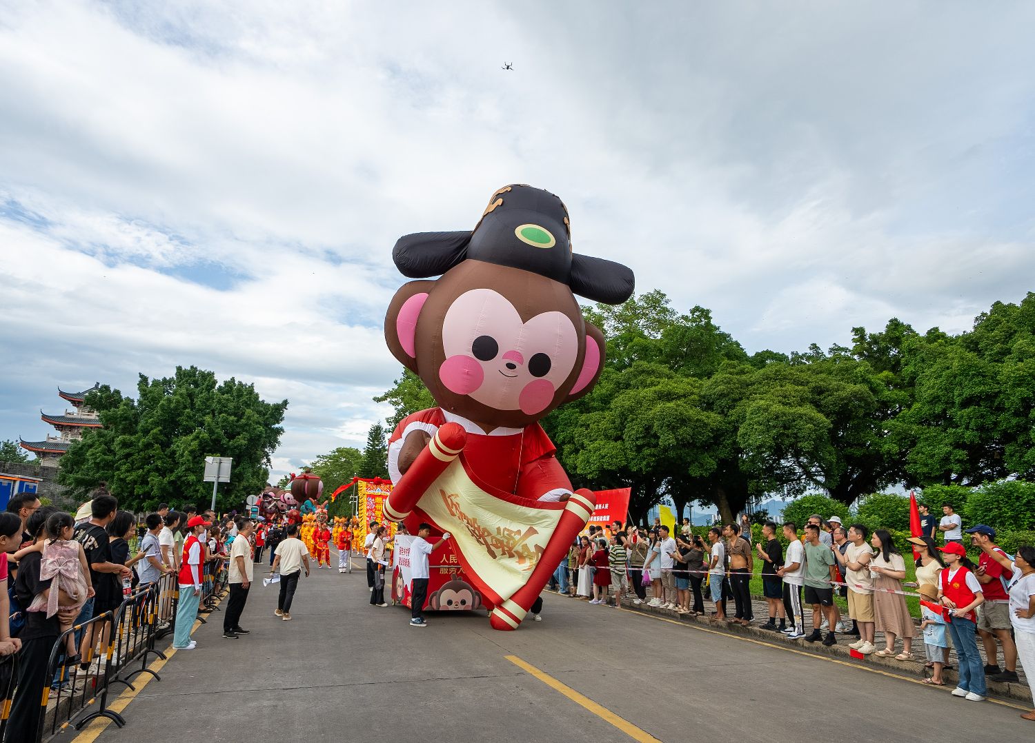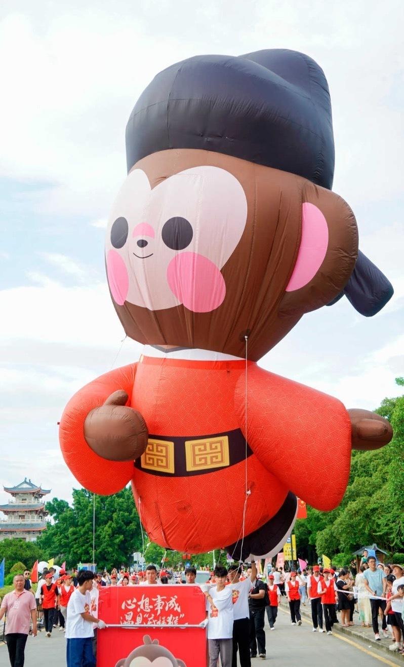 “府楼猴”气模巡游1日在潮州古城举行,吸引了大量民众和游客参与。(图片来源:中新社发/文化潮州供图)