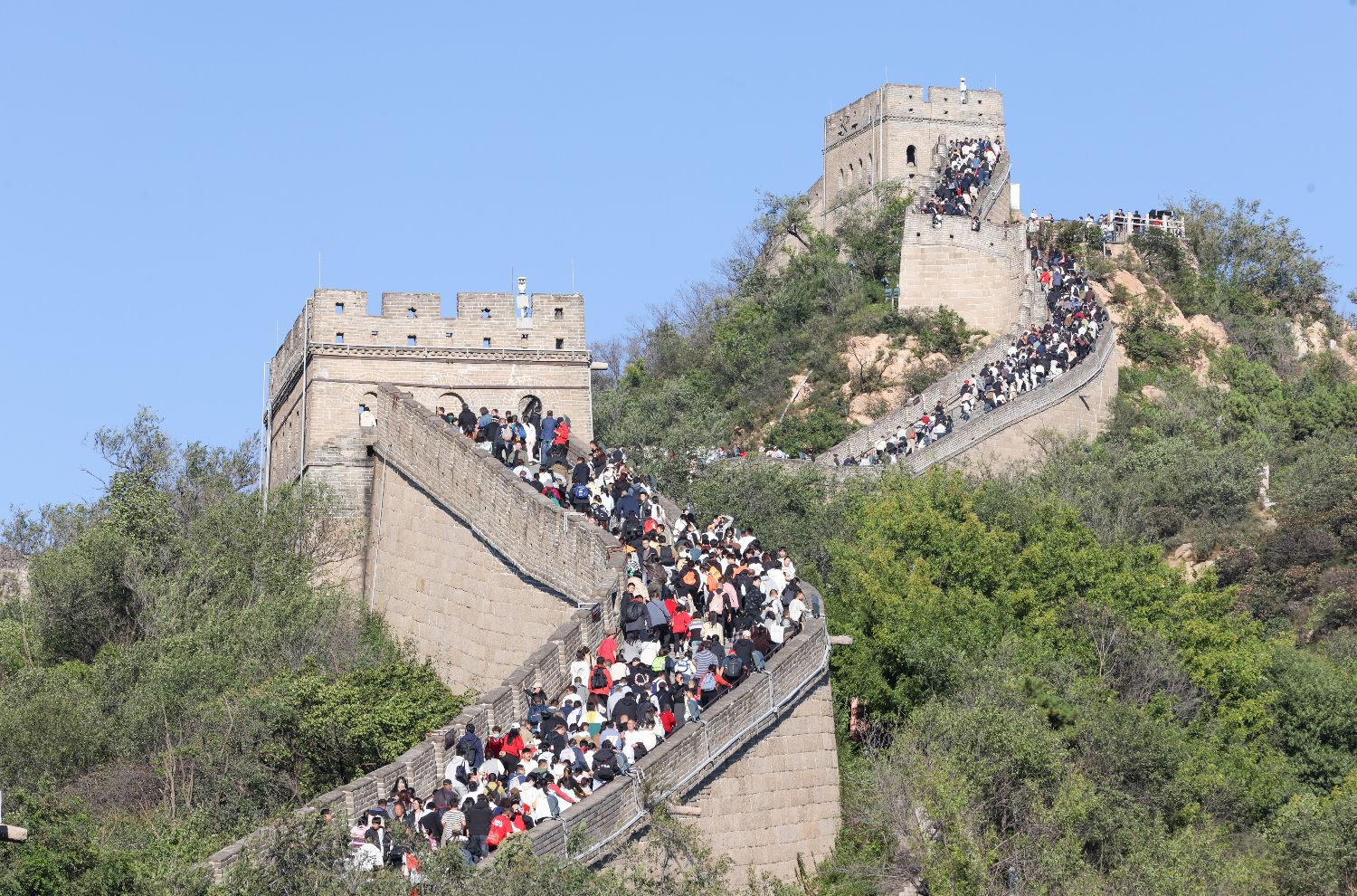 10月2日,北京八达岭长城迎来旅游大客流,景区内游人如织。(图片来源:中新社)