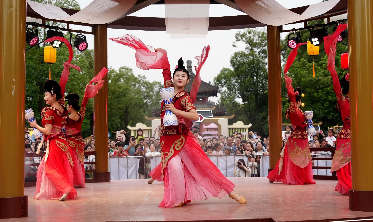 成都武侯祠博物馆10月2日推出中国风舞蹈、“蜀汉百景集”非遗集市等活动。图为舞蹈表演。(图片来源:中新社)