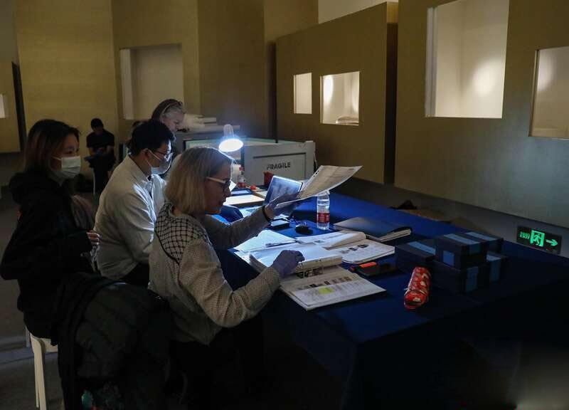 21日,中国国家博物馆,工作人员根据文物清单对接展陈文物。(图片来源:北京《中国青年报》)