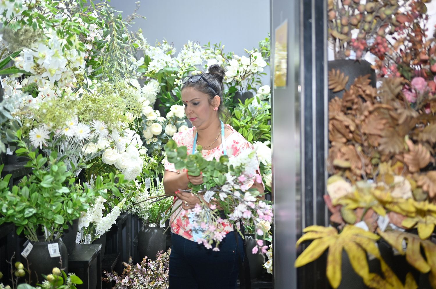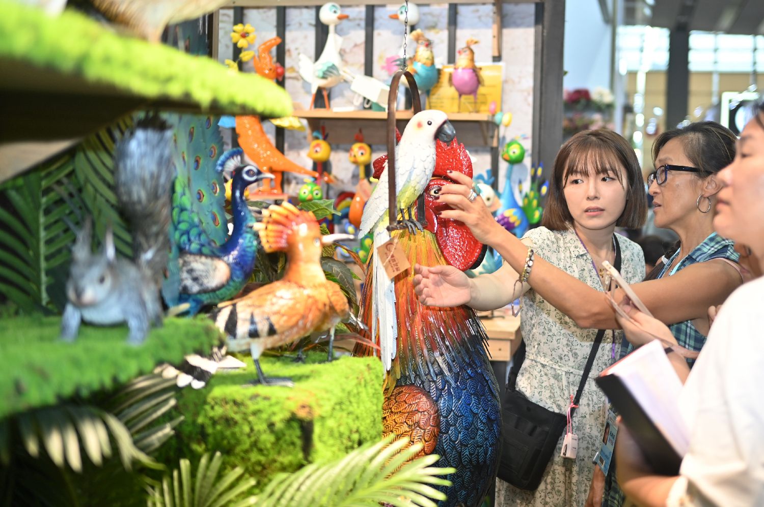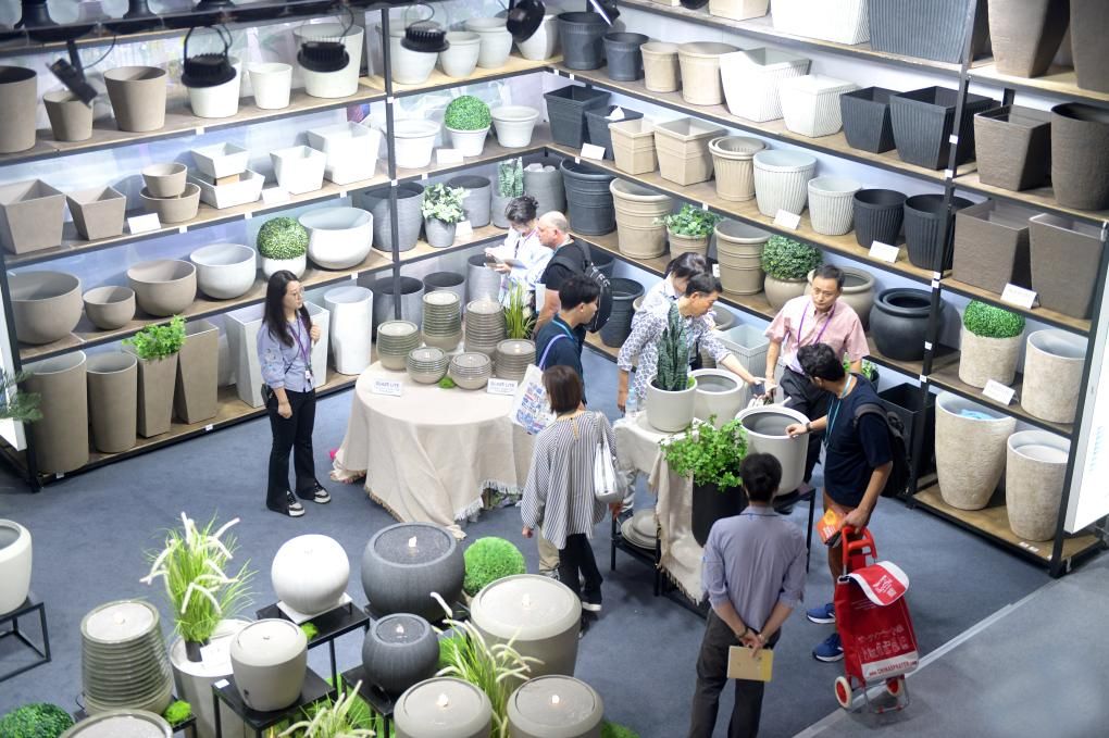 23日,园林用品展区一展位吸引采购商采购。(图片来源:中新社)