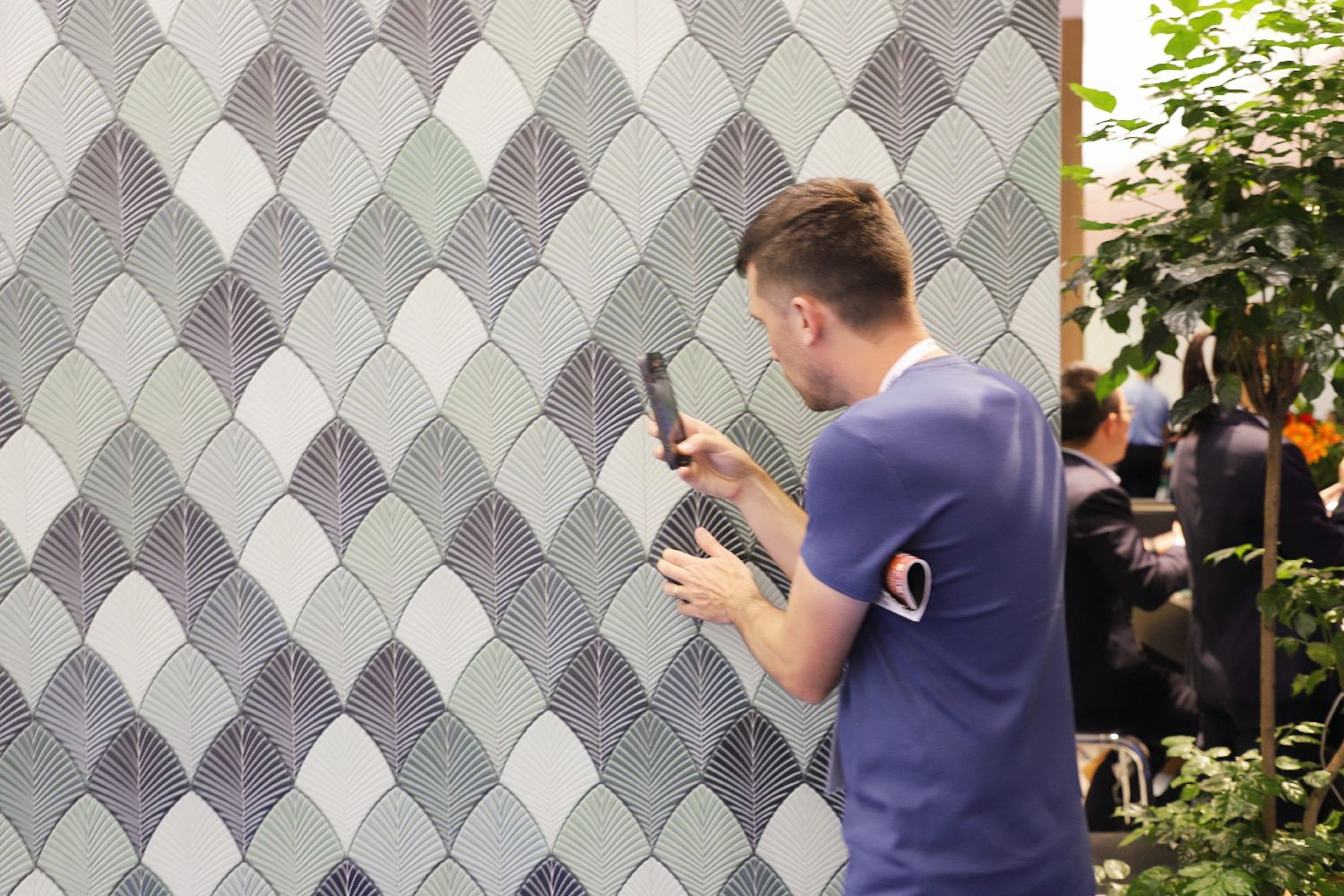 采用敦煌壁画元素作为图案设计灵感的瓷砖受到采购商青睐。(图片来源:北京人民网)